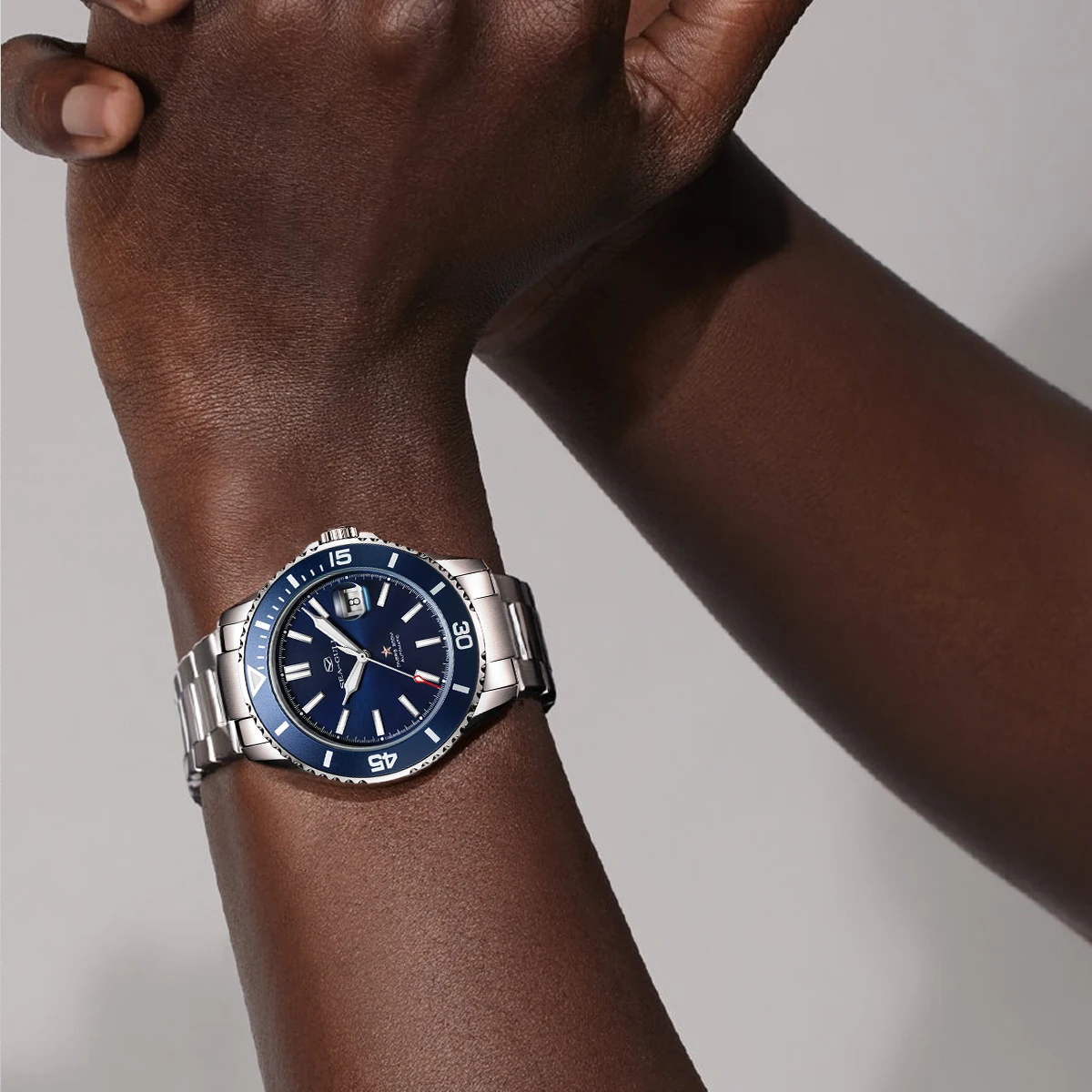Com caixa em aço inoxidável e mostrador com marcadores arábicos, o Luxor® SEA-GULL apresenta um visual imponente que se destaca em qualquer ocasião — seja no trabalho, eventos ou uso casual.