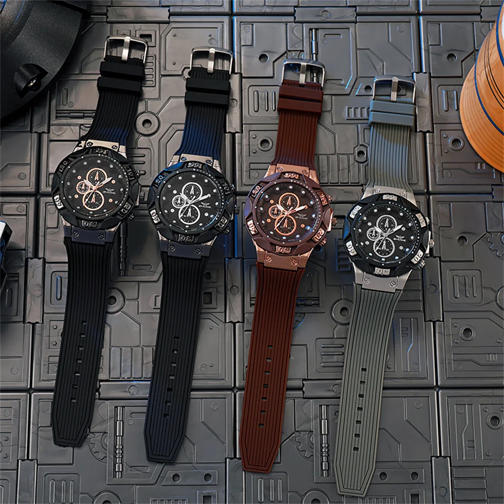 Relógios Luxor® Esportivos masculinos na moda 2025 novo design de moldura tripla relógio de quartzo marrom silicone relógio militar relógios masculinos.