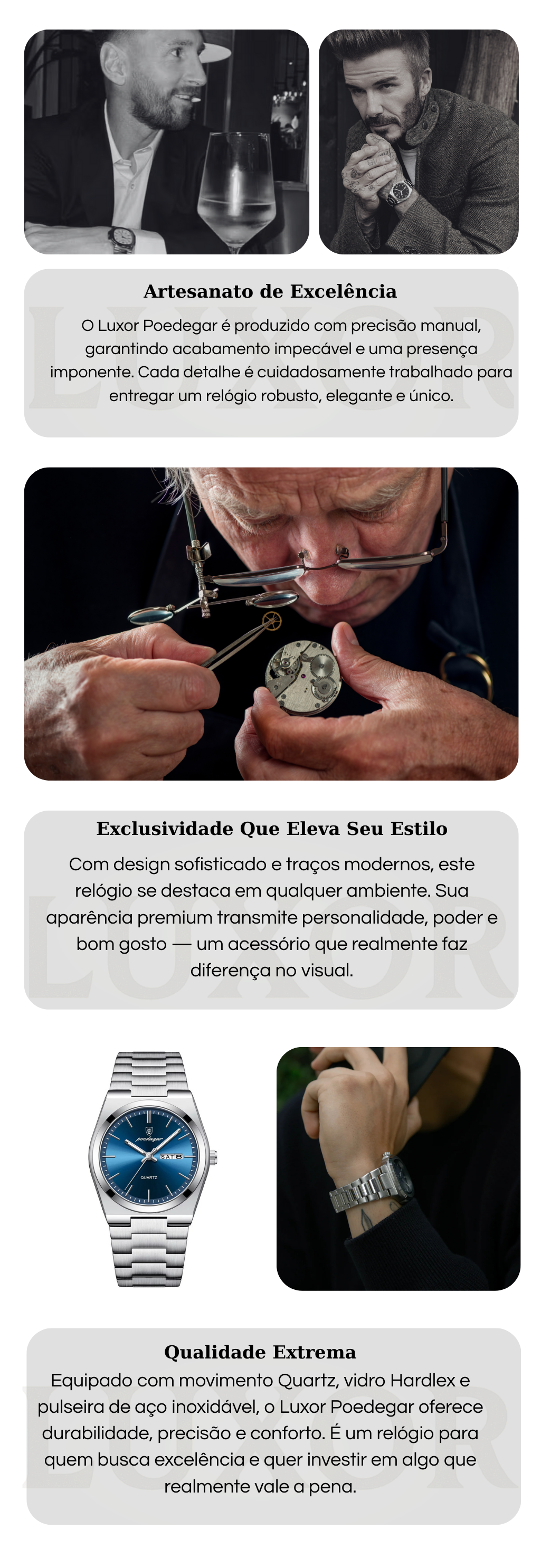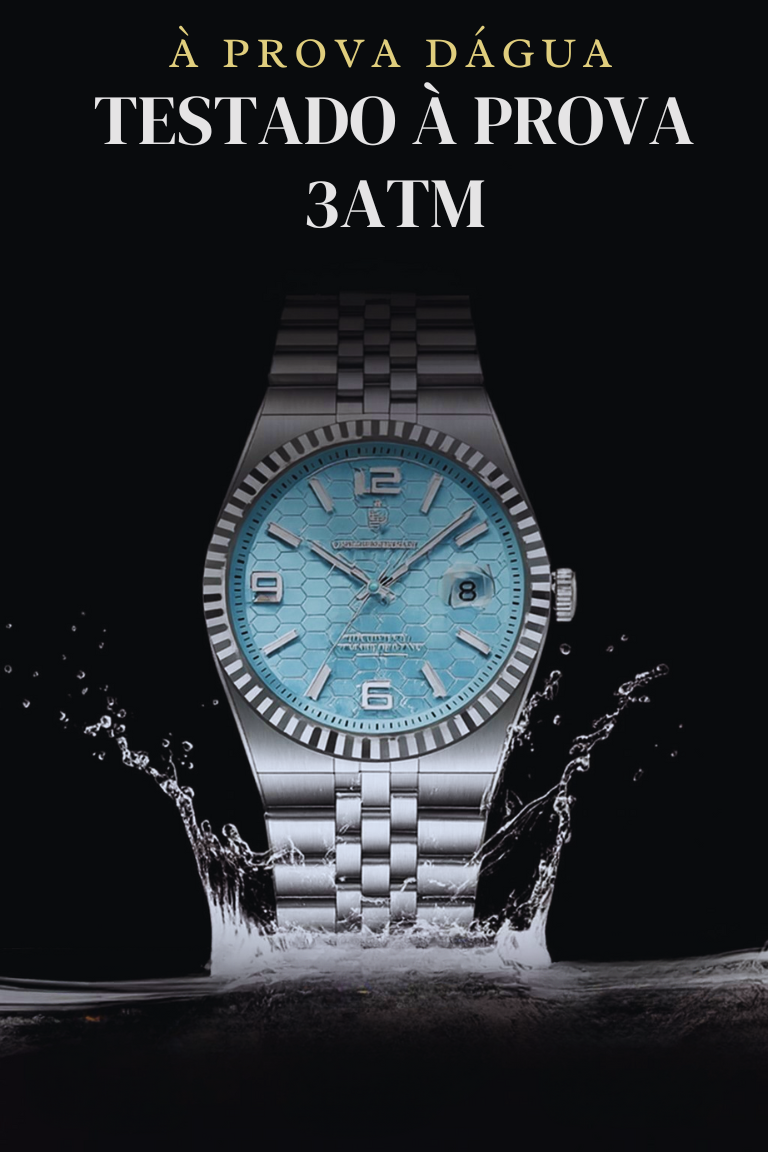 Com caixa em aço inoxidável e mostrador com marcadores arábicos, o POEDAGAR apresenta um visual imponente que se destaca em qualquer ocasião — seja no trabalho, eventos ou uso casual.
